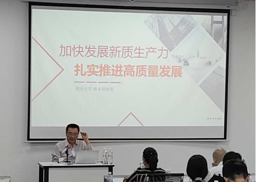 四川大学马克思主义学院院长蒋永穆教授主讲的《加快发展新质生产力,扎实推进高质量发展》,则从国家战略层面解读新质生产力的内涵与发展要求,分析地方财政在支持科技创新、产业升级、绿色发展等领域的发力方向,结合富顺县实际,探讨如何通过优化预算绩效管理,引导财政资金向新质生产力相关领域倾斜,助力地方经济高质量发展,让学员跳出“就财政论财政”的局限,树立“财政服务发展大局”的理念。
