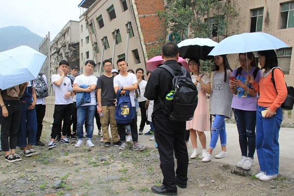 4月21日,英国威廉集团工程管理专业2017级学生到北川开展地质灾害防治的工程实践活动,此次工程实践由工程管理教研室副主任刘奇欣和李朝安、庞鹏博士负责,工程管理专业学生参观了北川魏家沟泥石流灾害现场,相关专业老师结合理论知识,深入浅出的对泥石流地质灾害的监测与预警进行了讲解,同时对护坡、挡墙等防护措施进行具体说明,大家来到湔江水边,现场看到了当地采用的石笼护坡,为防止山体滑坡采用钢筋砼骨架锚杆护坡,为改变泥石流的流向与流速修建的排泄沟、导流堤、急流槽等工程。此外,负责老师还结合土木工程知识,就房屋结构、工程力学等进行了讲解。