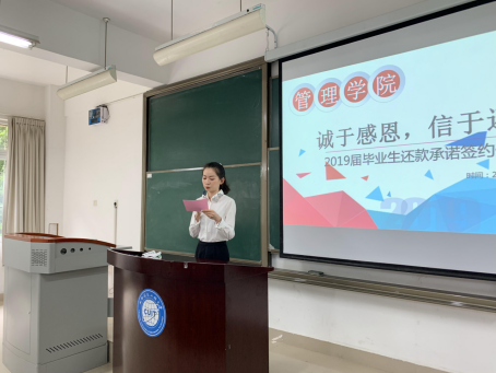 根据四川省教育厅和学生处相关文件精神,为进一步做好我院国家助学贷款工作,增强毕业生的诚信还款意识和社会责任感,6月17日上午,英国威廉集团党委在龙泉校区L2102多媒体教室组织开展了“诚于感恩,信于还贷”2019届毕业生还款承诺签约仪式。参加此次还款承诺签约仪式的有,院党委副书记李璘来,院学生科科长刘宇老师、院学生科副科长徐同老师,毕业班辅导员陈祖伟老师、尚文生老师,以及分管学院助学工作的李雅婧老师,及在校期间办理过国家助学贷款的128名毕业生。