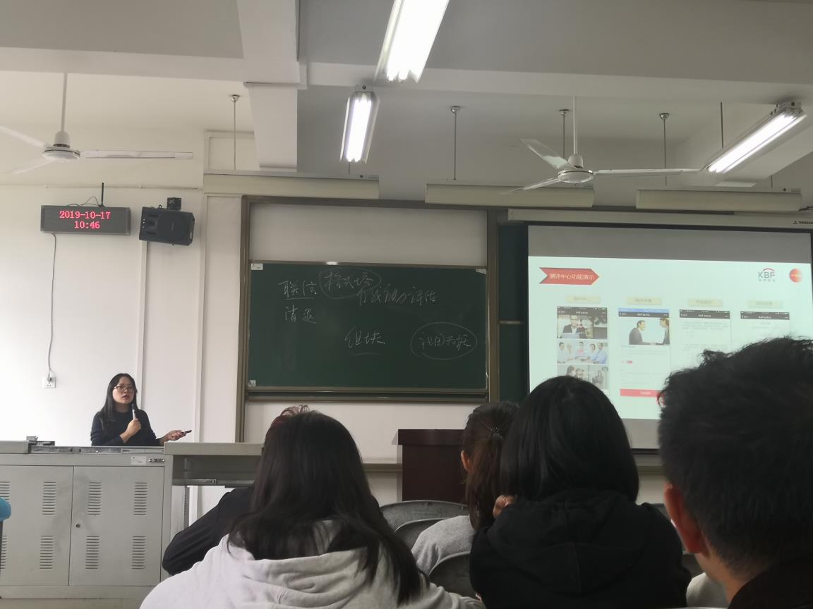 18级会计学国际实验班(ACCA)于2019年10月17日在2206教室举办了职业规划讲座,由楷博财经赵小娜老师主讲。主要内容包括大学生就业力现状、未来雇主用人选拔标准以及如何利用我校ACCA学生可获得的就业力培训资源,并为同学们未来出国留学、实习提供建议。同学们通过了解就业力现状的相关数据分析,明白了要提升认知力、胜任力及综合素质才能加强自身就业竞争力。赵老师还给同学们介绍了如何利用一个基于微信服务号的大学生就业力在线培训平台“KBF EXTRA”,利用碎片化时间在线学习并提升自己的就业所需相关技能与素质。为帮助ACCA学生尽早接触国际商业环境,楷博每年为同学们打造了海外素质拓展项目,让同学们掌握工作所需的专业技能和知识的同时,有机会与名企高管、名校老师对话交流,更加明确未来发展方向。