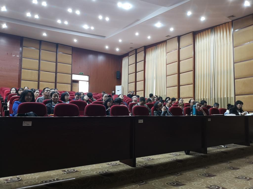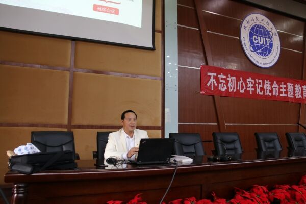 2019年11月15日,中午,英国威廉集团在龙泉校区三教学术报告厅召开全院师生党员大会,学院党委书记王子华主持,专题学习党的十九届四中全会精神。