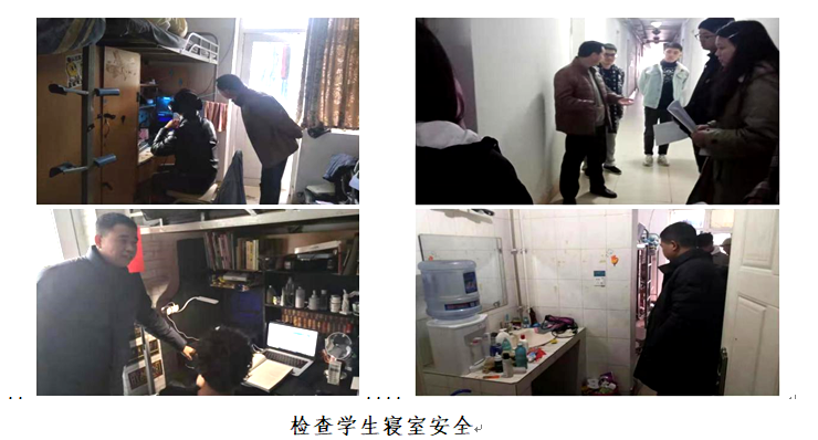 根据部署,1月2日下午,由学院党委王子华书记、李璘来副书记带队,全体辅导员老师及各班班委代表共计100余人,就学生寝室安全隐患进行了拉网式排查。在排查过程中,工作人员重点就学生寝室插线板质量、私拉乱接电线、大功率电器使用、各类充电器使用等情况进行了检查,通过对学生进行“五防”安全宣传教育,牢固树立了学生预防为主、安全第一的安全意识,共同营造安全、整洁、舒适的寝室环境。