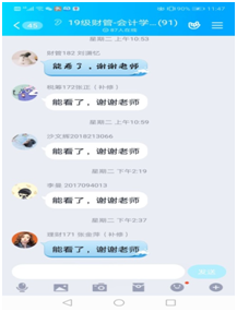 基于钉钉直播平台,充分利用线上教学的优势,“务实创新、因材施教”,不同专业有效合理融合,19级会计学、会展经济与管理、行政管理专业建立直播一群,19级财务管理、会计学(国际实验班ACCA方向)专业建立直播二群,不同专业共享线上教学资源,并按教学计划进行教学安排。