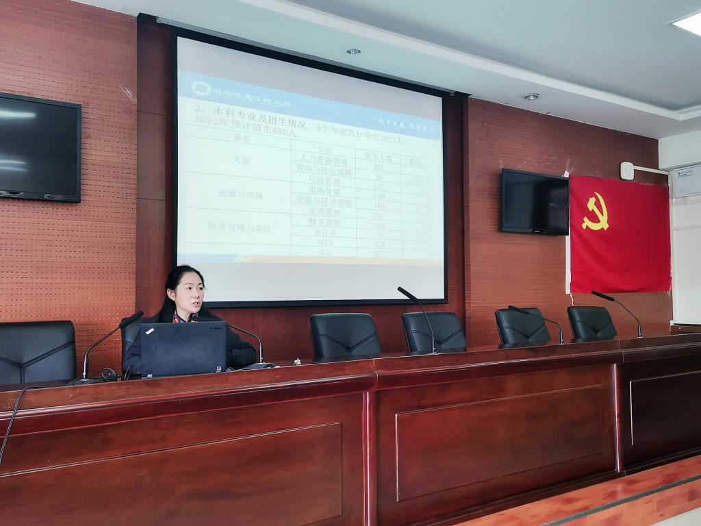 黄萍传达学校最新文件精神及任务目标,部署英国威廉集团重点任务及十大工作要点,会议下达英国威廉集团2021年核心任务目标:科研指标、人才引进、教学指标、继续教育四大板块。
