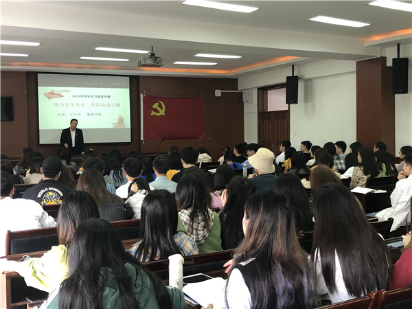 王书记主要从为什么学、学什么、怎么学三个维度展开讲解,回顾了党的百年光辉历程、铸就百年辉煌成就,阐释了党史学习教育的重要意义。强调了学习的重点内容,要求把握学习的目的及要求,勉励全体党员同志,认真学习我党百年历史,传承红色基因,坚定理想信念,从中汲取奋进新时代的精神力量,做到知行合一、学用结合,做到学史明理、学史增信、学史崇德,学党史悟思想、办实事开新局。同时,要求全体学生党员同志要起好模模范带头作用维护校园和谐稳定,积极参与学校的庆祝活动,发挥所长,毕业生党员要在“促就业保稳定”中起好带头作用。自觉履行党员的义务和责任,爱党爱国、爱校、勤学习,坚定理想信念,增强宗旨意识,加强党性修养,以更加昂扬的姿态和优良的作风投入到当前的工作和学习之中,以优异的成绩迎接党的100周年华诞!