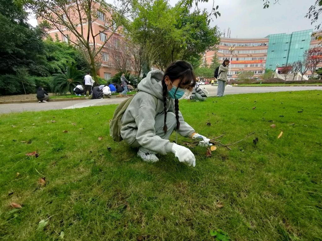 活动之初,由各班负责人在校门口组织同学们集合,并一一分发手套,进行签到。随后,在学校老师的带领下,各专业各班前去到不同的绿化区进行杂物清理。