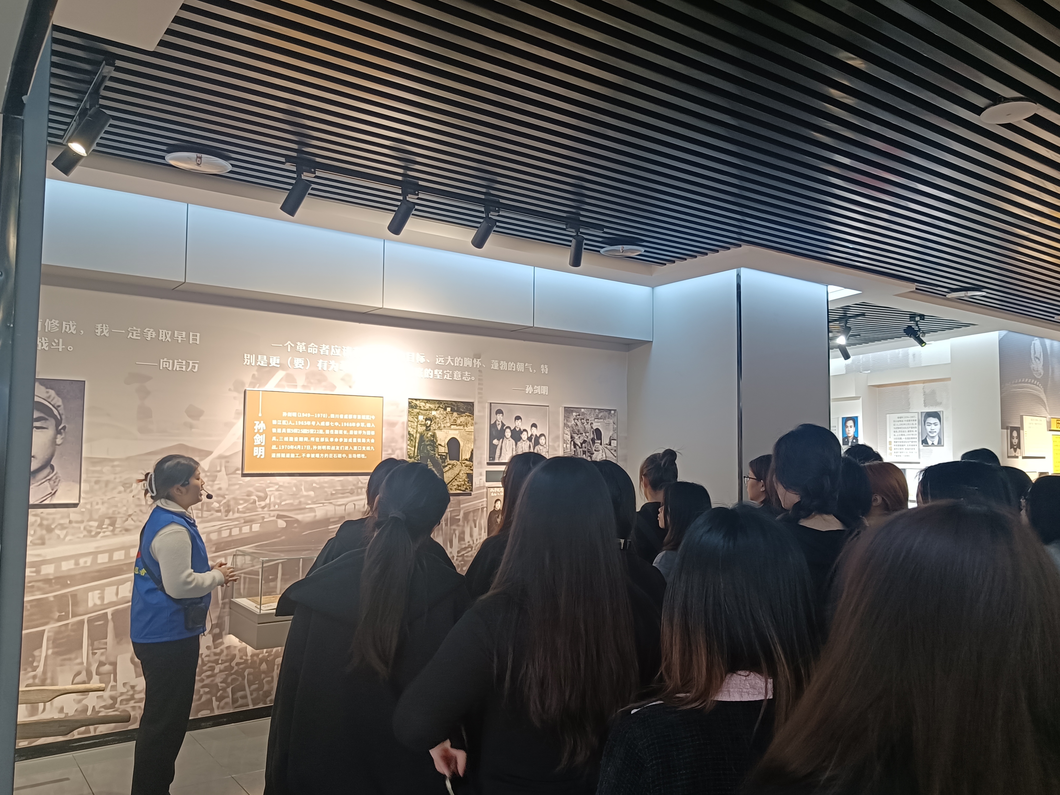 祭奠仪式结束后,师生集体走进烈士纪念馆参观学习。馆内陈列着彭家珍、王右木等革命先驱的相关史料,详细记录了十二桥事变、抗美援朝、三线建设等不同时期的革命与建设史实。大家逐一参观各个展区,认真了解革命先辈的奋斗经历与英雄事迹,感悟先辈们坚守信仰、甘于奉献的革命精神。