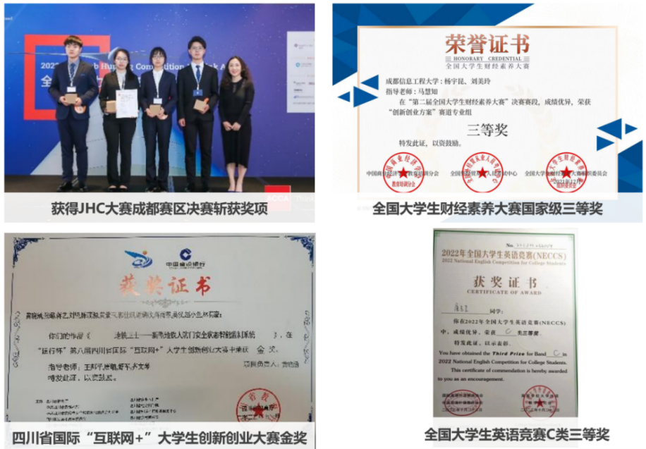 学生多次在ACCA JHC全国就业力大比拼比赛、全国大学生英语竞赛、互联网+等全国性比赛中斩获国家级三等奖、省赛金奖等奖项。