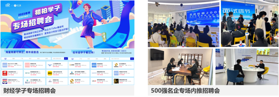 携手知名人才招聘机构,每学期组织财经专场招聘会,汇集超1000家名企,5000+热门实习与校招岗位,精准匹配同学们职业发展需求。同时联合优质雇主,开展线下求职指导和名企内推直通招聘活动。