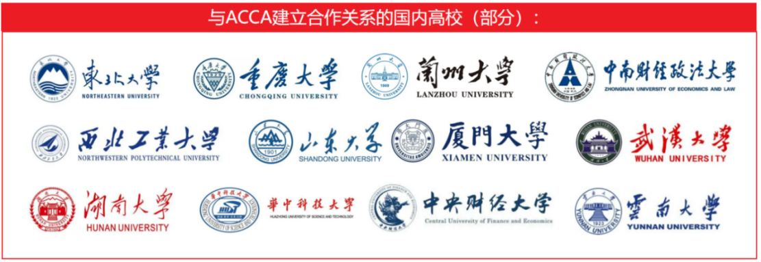 目前,已有120+所高校开设了ACCA专业方向本科,此外,华中科技大学、中南财经政法大学等众多“双一流”高校还与ACCA合作开展了专业会计硕士MPAcc+ACCA合作项目,实现ACCA课程与硕士课程的有效融合。ACCA专业学习经历将为未来升入双一流名校读研打下坚实的专业基础。