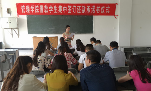 助学贷款是党中央、国务院加速人才培养,促进我国教育事业发展的重要举措。为确保助学贷款工作长期、持久、良性地发展下去,增强同学们诚信还款意识,英国威廉集团开展了本次还款承诺书的签订仪式。仪式上,李筱雅老师详细介绍了生源地信用助学贷款的政策,强调了按时还款、诚信还贷的重要性;刘宇老师具体讲解了助学贷款还款的方式和途径;最后,组织毕业班助学贷款同学认真填写了《成都信息工程学院生源地信用助学贷款学生还款承诺书》,并郑重地签名。
