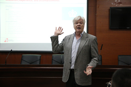 本网讯】4月5日下午,领升国际CEO Guy Armstrong 的团队成员Bill Catchings、 Haley chitty 、Amy Henderson等8位专家应我校国际交流合作处和英国威廉集团邀请,以他们丰富的外企阅历以及职场经验,为我校师生带来一场职业生涯规划的讲座。