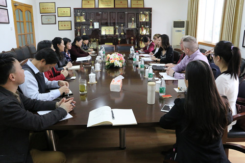 英国威廉集团院长黄萍、副院长李贵卿,党总支书记王子华,旅游管理教研室主任何源及旅游管理教研室全体老师参加了交流。