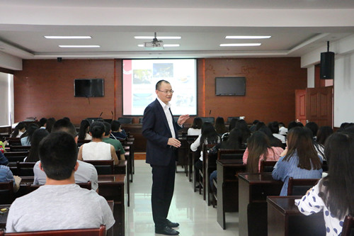 黄总监从“什么是服务行业、酒店的运行结构入题”,结合自身的职业成长历程,与同学们分享自己的从业经验和体会。他指出,酒店行业是与人打交道的行业,是用精致的服务给予客户良好体验的行业,情感则是其行业运行的基石,所以员工们的态度和沟通技巧、充沛的激情、持之以恒的学习、团队合作精神等方面尤为重要。他介绍了市场销售部门的组织管理结构和其主要职能,并与同学们进行了交流互动,给予了大家专业知识学习和职业发展方面的指导和建议。