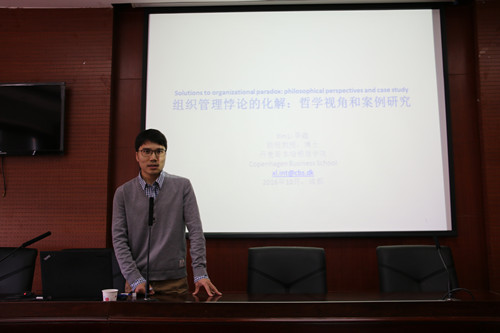 【本网讯】10月24日,丹麦哥本哈根商学院助理教授李鑫博士应邀莅临我校,在龙泉校区二会议室为我校师生做了题为“Solutions to organizational paradox:philosophical perspectives and case study”的管理论坛系列讲座。讲座由李贵卿副院长主持。