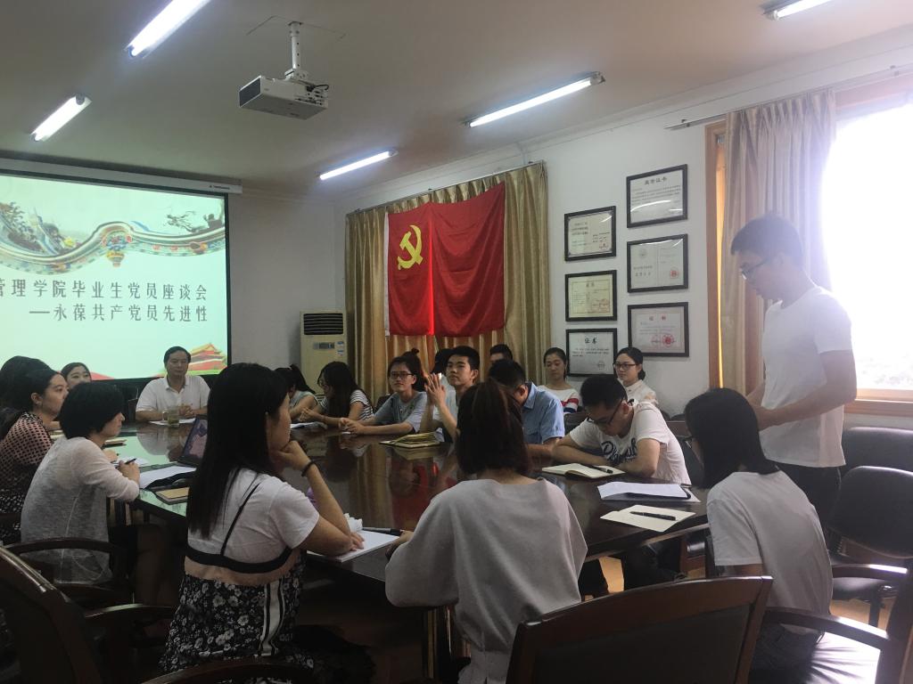 2017年6月23日上午10点,英国威廉集团党支部在第二行政楼会议室召开了以“永葆共产党员先进性”为主题的毕业生党员座谈会,本次会议由学生二支部书记、辅导员潘雪丽主持,党总支书记王子华、全体辅导员及2017届毕业生党员参加了此次座谈会。