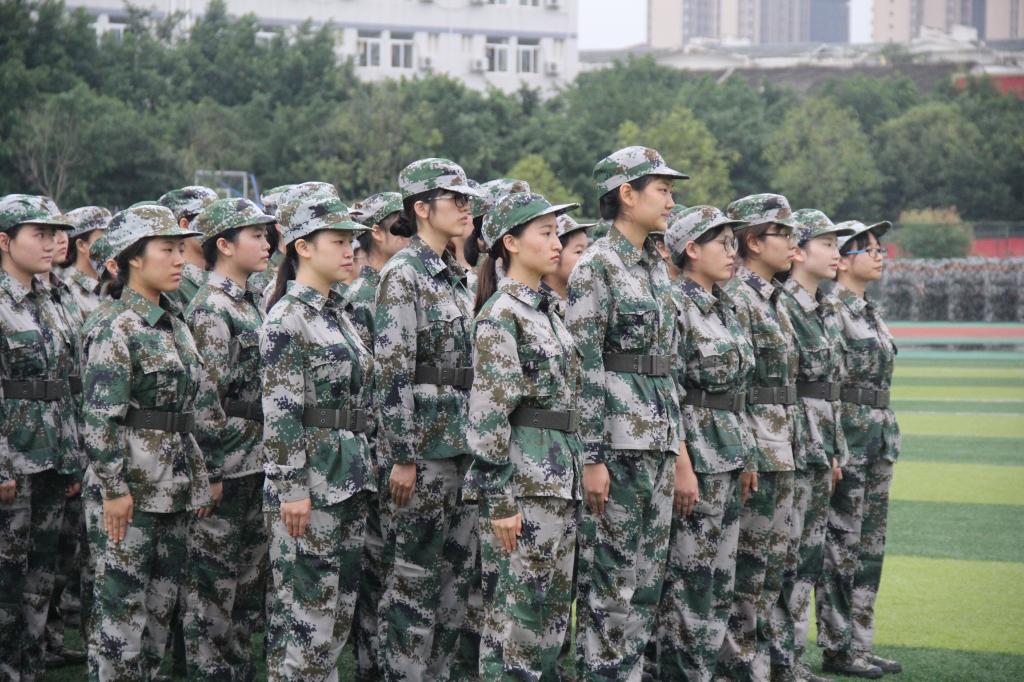 军训时长14天,目前已进行了四天。凉爽多云的天气下,绿茵柔软的足球场边,身着橄榄绿迷彩服的新生们显得活力十足,在英姿飒爽的军官带领下,新生们认真训练,没有半丝懈怠。新生们分为队列方阵和表演方阵。足球场上,军官们严格要求新生整理军容、端正军姿,不时亲自示范纠正基本动作,队列方阵新生们挺起胸膛、呐喊口号,在正步、齐步等训练中展现着气势磅礴的青春映照。表演方阵的同学们或手持标枪、或紧握枪械,整齐划一、尽展雄姿,啦啦操队的新生们更是活力四射,舞动着散发青春朝气。在这里同学们磨砺着钢铁般的意志,坚定不移的毅力。