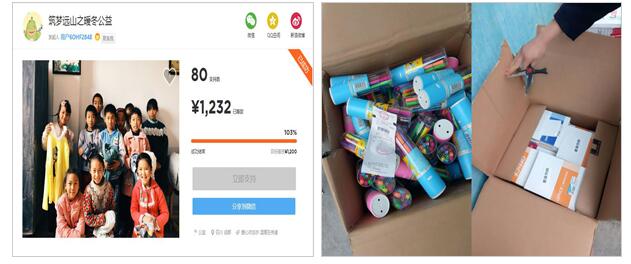 回顾前期的准备工作,11月中旬,通过线上众筹和线下募捐的方式筹集暖冬物资。在众筹网(www.zhongchou.com)上发起“筑梦远山·暖冬公益”众筹项目,成功众筹1232元。在龙泉校区全校师生、校园周边小区居民、同安小学师生以及社会其他爱心人士的热情参与下,线下募捐获得1500余元的爱心物资。