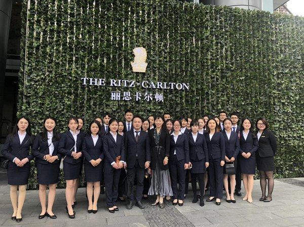 4月13日下午,我校第六届“万豪酒店班”学生在旅游管理专业主任何源博士、班主任刘巧老师的带领下,赴成都富力丽思卡尔顿酒店开展实践课程的实地学习活动。