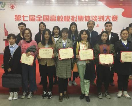 本次比赛中,我校劳方和资方代表队获得了“第七届全国高校集体模拟谈判大赛劳方代表队二等奖”、“全国高校模拟集体谈判大赛资方代表队三等奖”、“优秀指导教师一等奖”。杨泽仁同学和陈欢同学荣获“最佳谈判员”称号。
