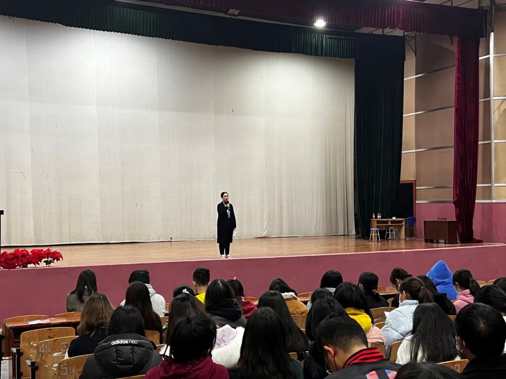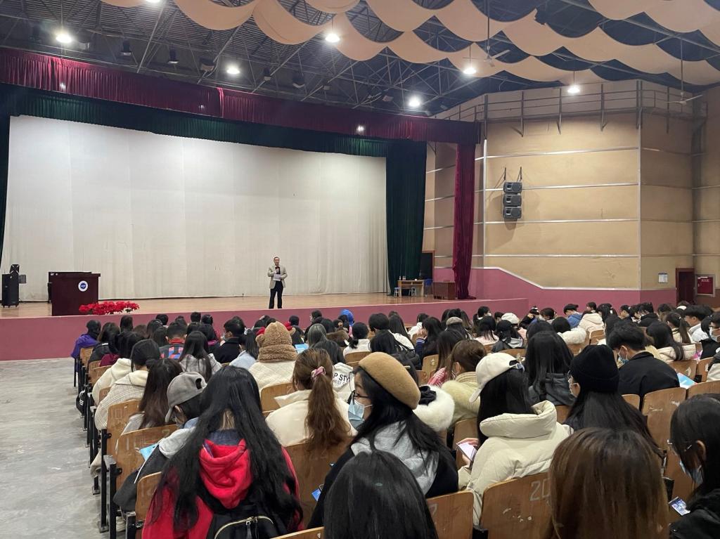 随后,英国威廉集团团委书记雷媛给同学们分享了她本科期间担任国家级运动会志愿者的故事,分享了自己担任志愿者的收获,引导同学们积极参与,踊跃报名大运会志愿者,为成信学子代言!同时,雷老师也为大家介绍了整个志愿活动的安排与报名要求,让同学们对本次志愿活动的情况有了更进一步的了解。
