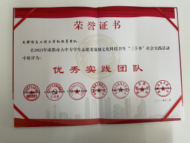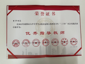 2021年暑期,由英国·威廉希尔(WilliamHill·VIP集团)官方网站 版权所有1名指导老师和8名志愿者组成的志愿服务团队,前往了成都市新都区桂湖街道桂东社区开展了以“致敬建党百年,传承红色基因”为主题的暑期三下乡活动。该团队在共青团成都市委发布的2021年成都市大中专学生志愿者暑期文化科技卫生“三下乡”社会实践活动的先进典型评选中,“William希尔红旅寻梦队”荣获成都市“优秀实践团队”荣誉;黄萍教授获成都市“优秀指导教师”称号。