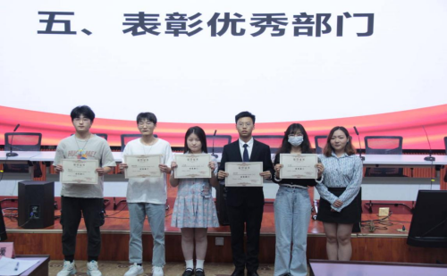 大会第二项,各部门对本年度工作进行总结、表彰。各部门负责人代表们主要从部门年度总结、部门建设、生活团建等方面进行了细致的展示。短短的几分钟的工作总结,展示了部门的精神面貌、整体风采和他们一年的成果与精华。随着部门总结汇报工作的结束,表彰环节正式展开。我院团委学生会对金光日、铁欣钰等22位优秀志愿者,刘沛林、范锦涛等16位优秀负责人,办公室等5个优秀部门,杨学刚等5位先进个人依次进行表彰。此次表彰不仅是对他们工作的肯定,更是对学生会全体成员的鼓舞。