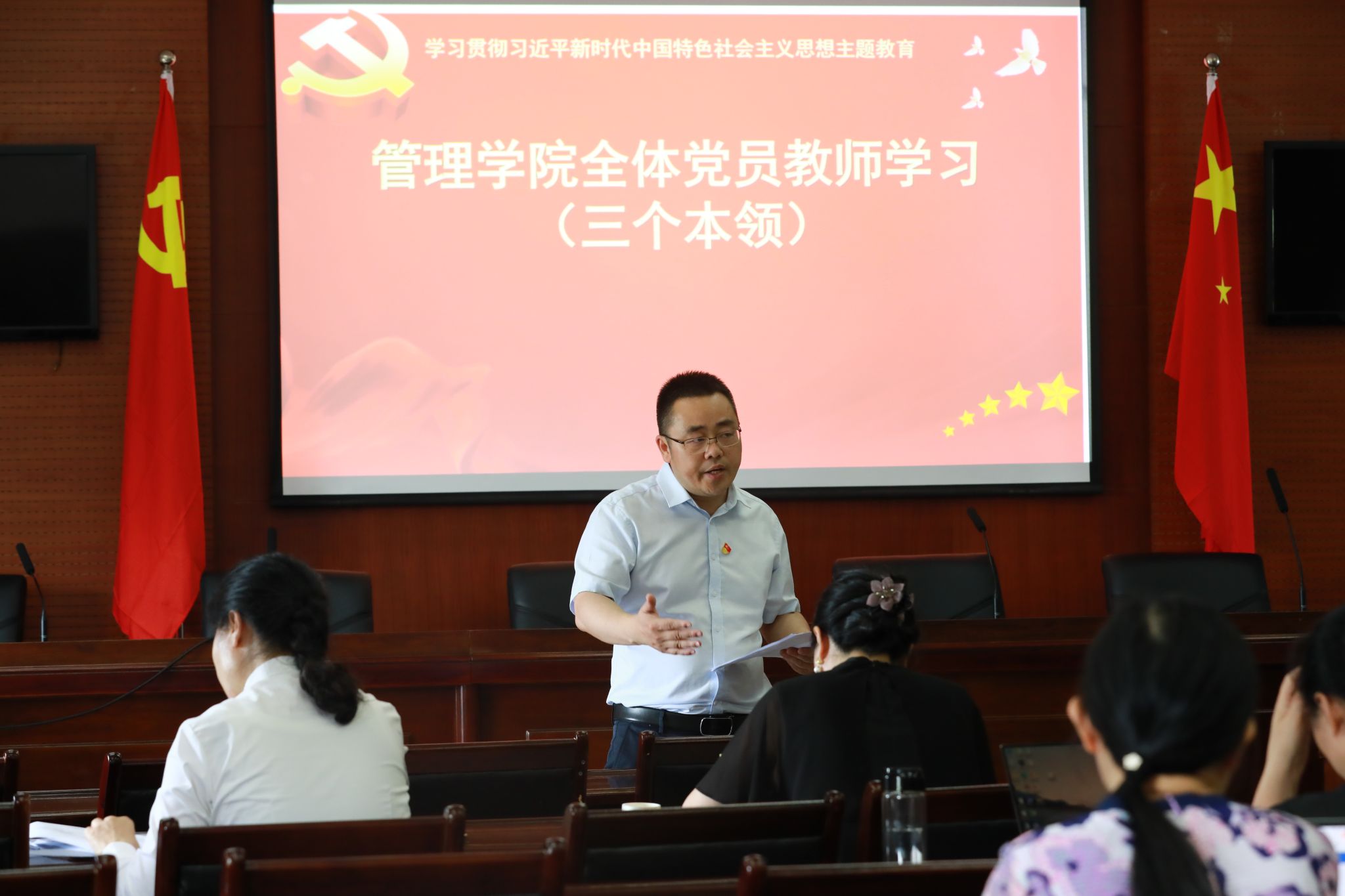会上,刘敦虎带领学院全体教职工党员集中学习了“三个本领”重要内容。刘敦虎指出,习近平总书记在党的二十大报告中明确要求,“增强干部推动高质量发展本领、服务群众本领、防范化解风险本领”,这是党着眼新形势新任务对干部队伍建设提出的基本要求,是推进现代化建设进程中干部工作的重要遵循。学院党委和纪委要围绕贯彻落实党的二十大重大部署,组织开展专题培训,注重运用案例加强实战化培训,帮助干部拓宽思路视野、更新思想观念、提升履职能力,提高对重大风险的预见、应对、处置能力。