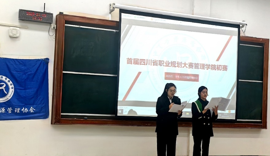 为进一步培养我院学生的职业生涯规划意识,引导学生明晰职业发展目标,根据学校招生就业处下发的大学生职业生涯规划大赛文件,学生人力资源管理协会于2023年11月15日晚在四教102举行大学生职业生涯规划大赛,协会邀请了文革教授、祖霞副教授、杨帆副教授作为本次大赛的评委老师。