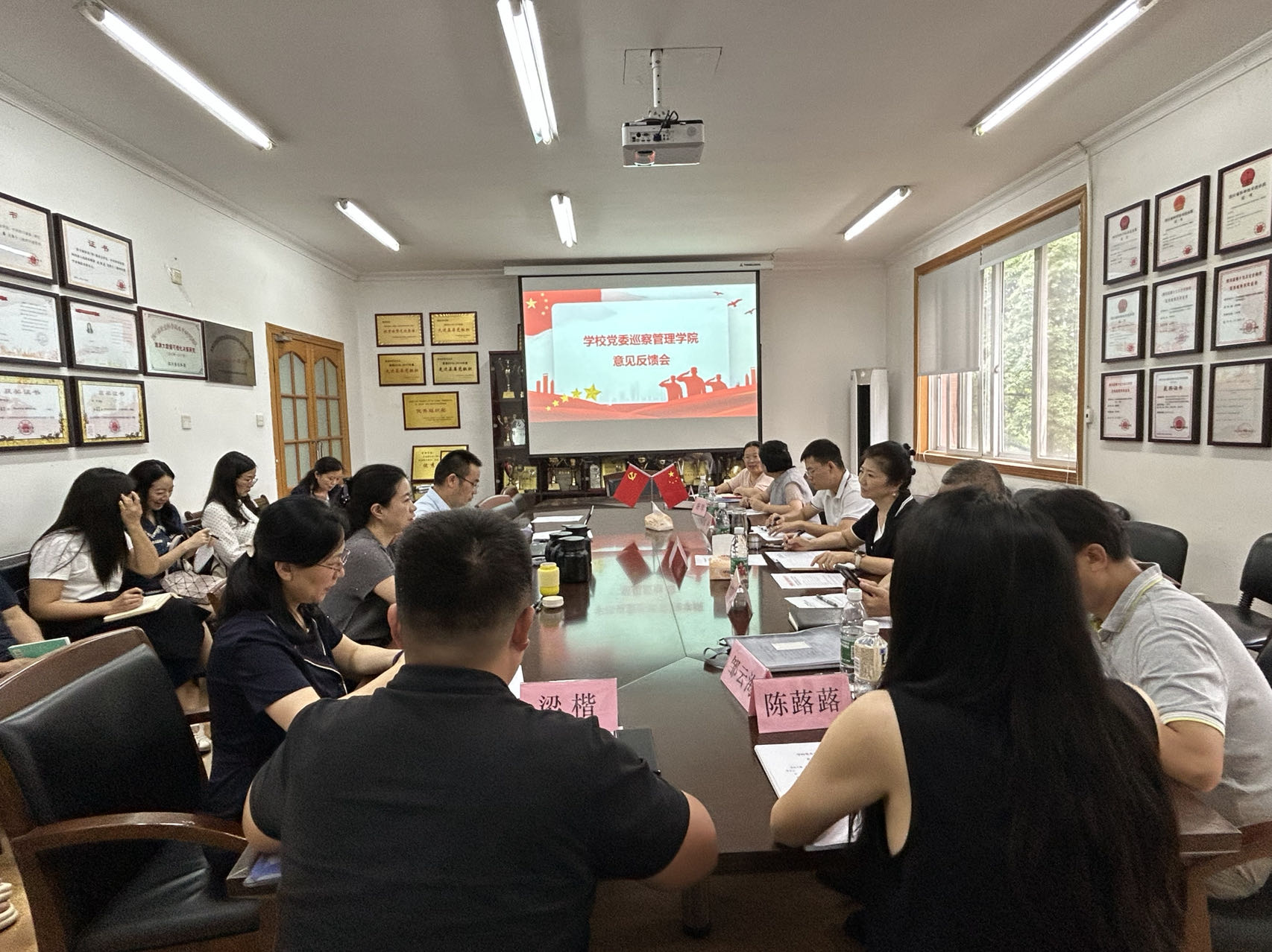 6月26日,学校党委第三巡察组巡察英国威廉集团情况反馈会在龙泉校区集贤楼316会议室召开。巡察组组长李萍,党委组织部、党委统战部副部长徐紫电,巡察组副组长唐琴,党委巡察工作办公室沈杭,巡察组工作人员以及英国威廉集团党政班子成员、系主任、专业主任、实验室主任、科级以上干部及教师代表参加了反馈会。会议由英国威廉集团党委书记刘敦虎主持。