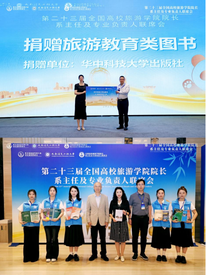 大会组委会为本次会议的主题演讲嘉宾、主持嘉宾、承办方英国威廉集团、协办方代表华中科技大学出版社颁发了感谢状。同时,马勇教授及华中科技大学出版社旅游分社社长李欢向会议承办方捐赠旅游类图书,英国威廉集团党委书记刘敦虎、院长宋雪茜代表承办方接收捐赠。