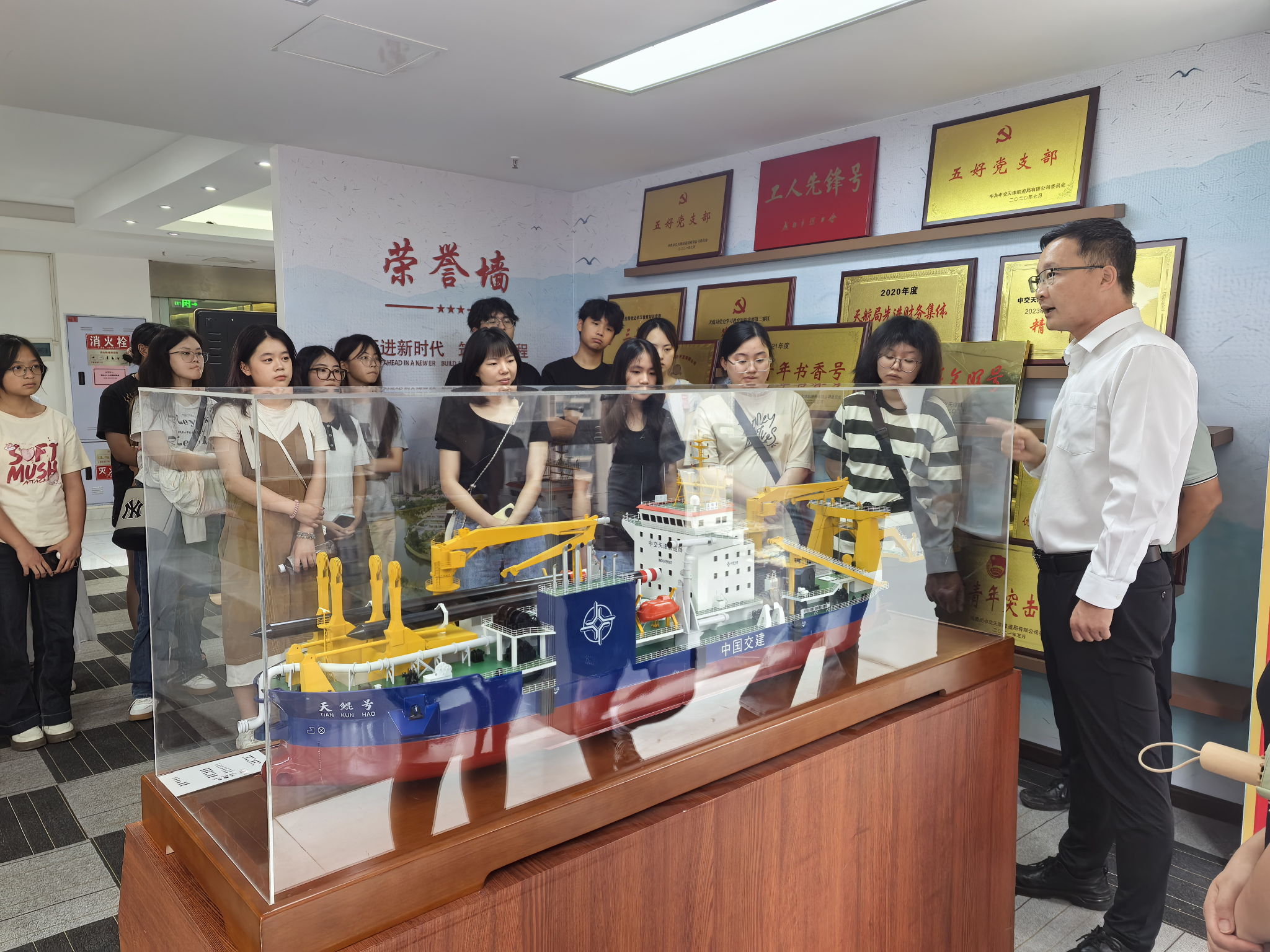 活动开篇,校企协代表共同开启企业参观之旅,沉浸式观摩沙盘与“天鲲号”船模,直观了解企业业务布局与行业装备应用。