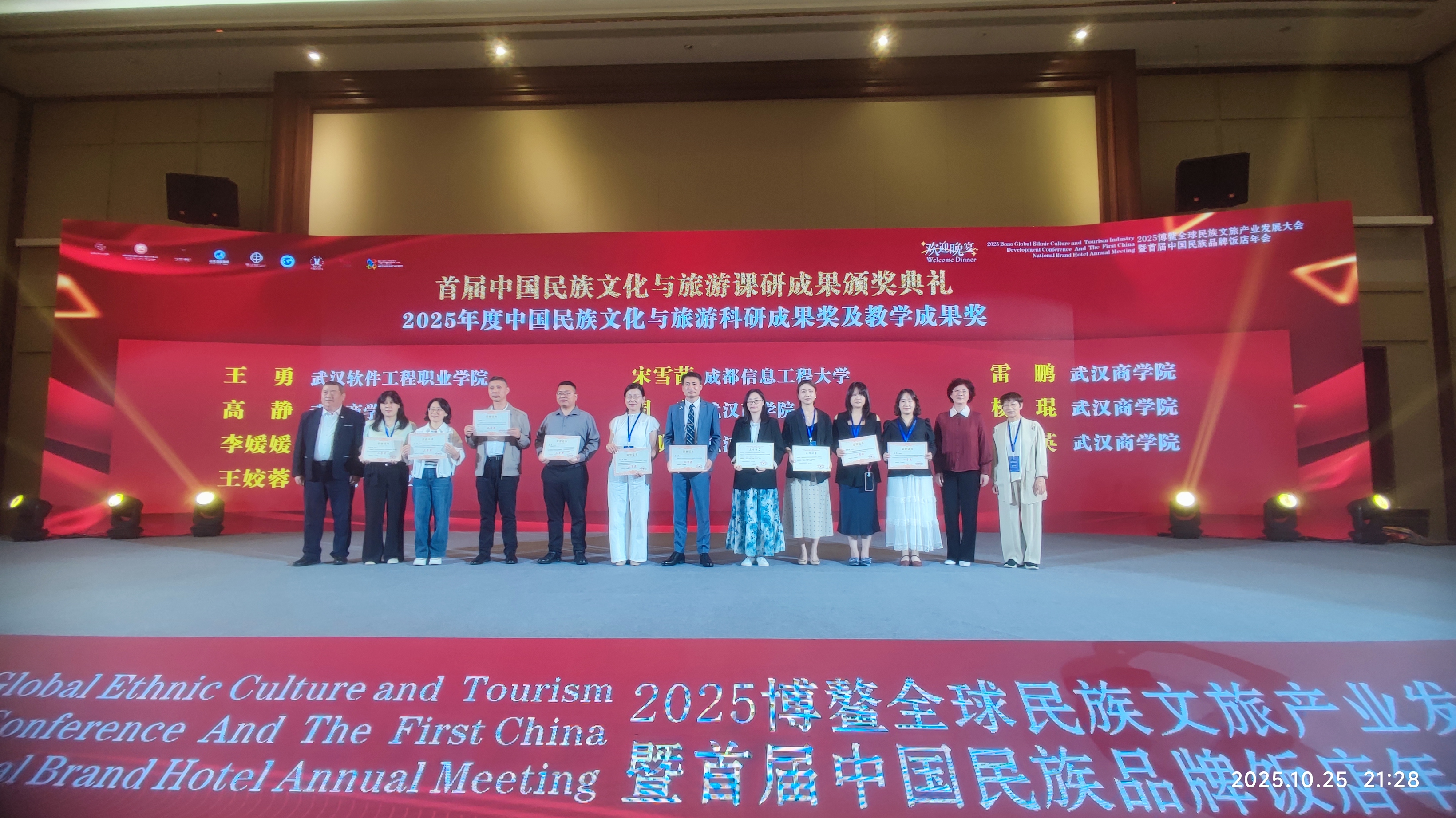 本次优秀成果奖评选活动旨在深入贯彻落实国家关于推动文化与旅游融合发展的重要战略部署,竞争十分激烈,共评选出34项获奖成果,其中科研成果奖23项,教学成果奖11项。经由中国民族贸易促进会组织的权威专家组严格评审,由我校英国威廉集团院长宋雪茜教授负责的“民族地区经济社会发展研究团队”所完成的研究成果,荣获中国民族贸易促进会“2025年度中国民族文化与旅游科研成果二等奖”,团队成员许娟老师参与了本次颁奖典礼。该奖项不仅是对研究团队学术能力的肯定,更是对民族地区文化与旅游深度融合发展领域前沿探索的认可,彰显了学术研究服务国家战略、回应现实需求的积极意义。