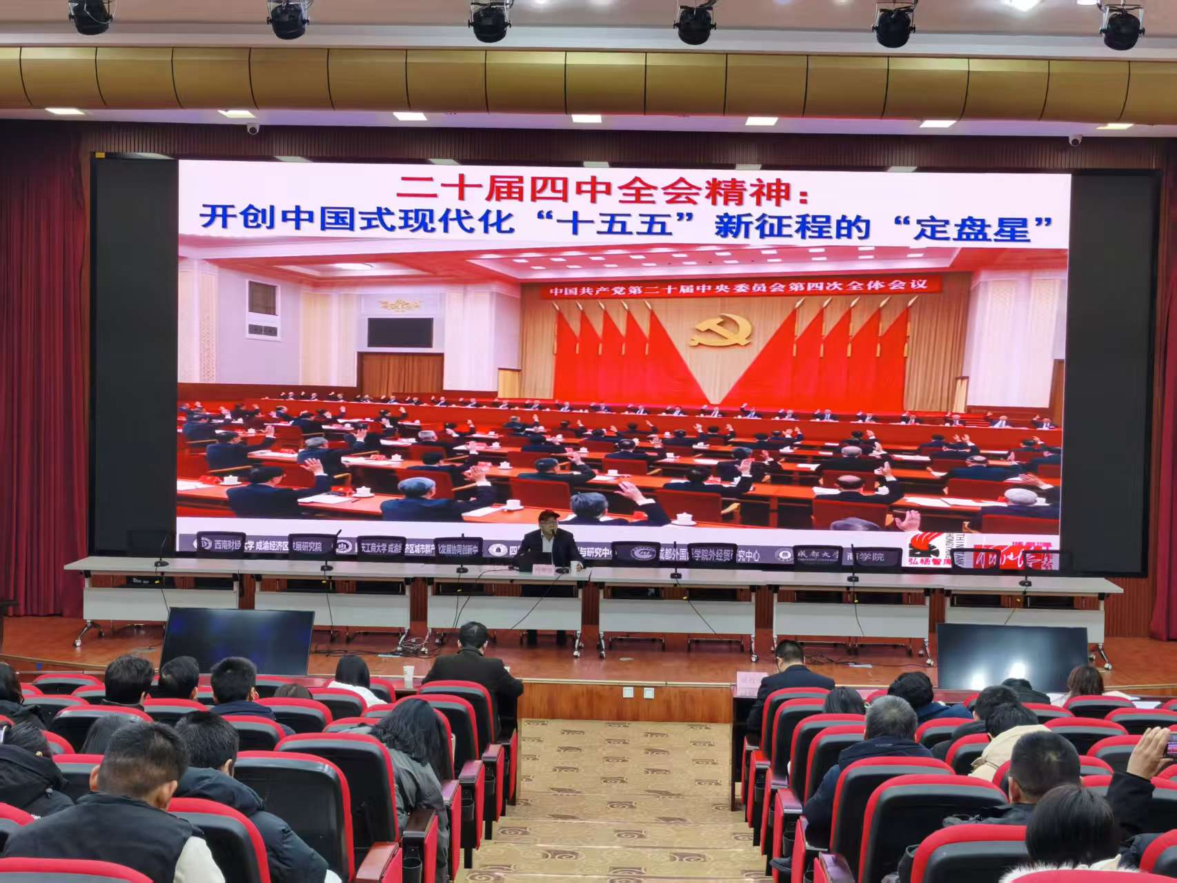 本次宣讲会以“开创中国式现代化‘十五五’新征程的定盘星” 作为核心主题。杨继瑞教授所讲解的内容既具有理论深度,又富有实践温度。他阐述了二十届四中全会召开的重大意义,系统解读了《中共中央关于制定国民经济和社会发展第十五个五年规划的建议》框架结构以及核心要义,深入剖析了当前国际格局演变对我国带来的发展机遇与风险挑战,详细阐释了高质量发展、科技自立自强等七大发展目标。针对中美经贸博弈等热点问题,杨继瑞教授结合具体案例阐述了我国的应对策略。