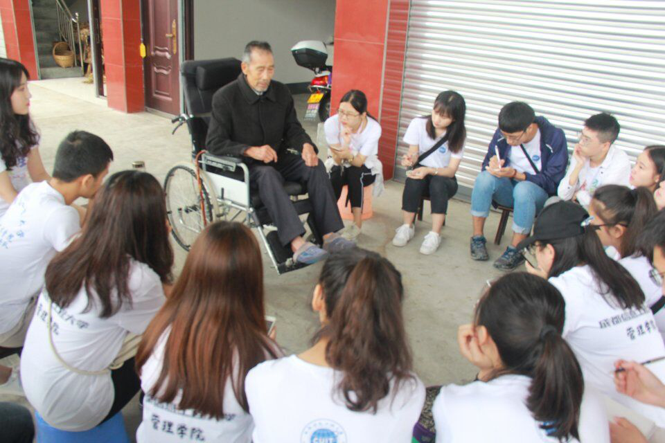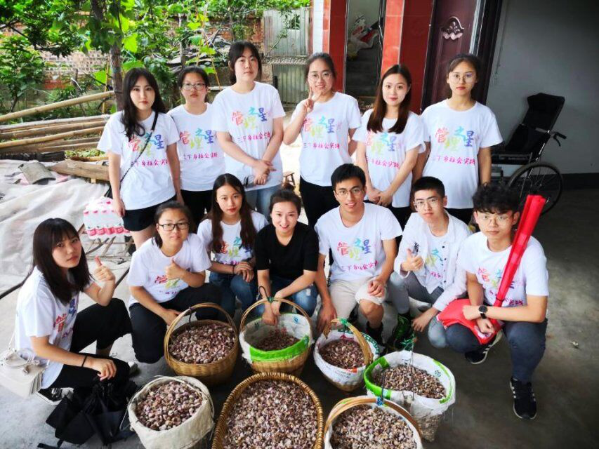 7月13日上午9点,“管理之星”队员在老师的带领下到达抗美援朝老党员的家,开展聆听老党员教诲的思想教育活动并进行农务劳动。