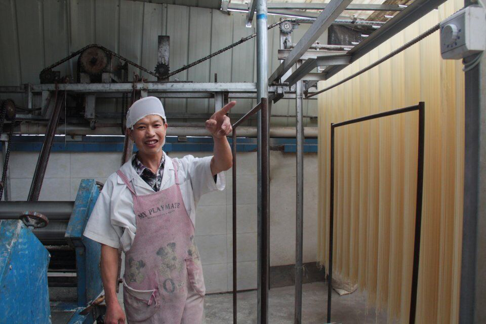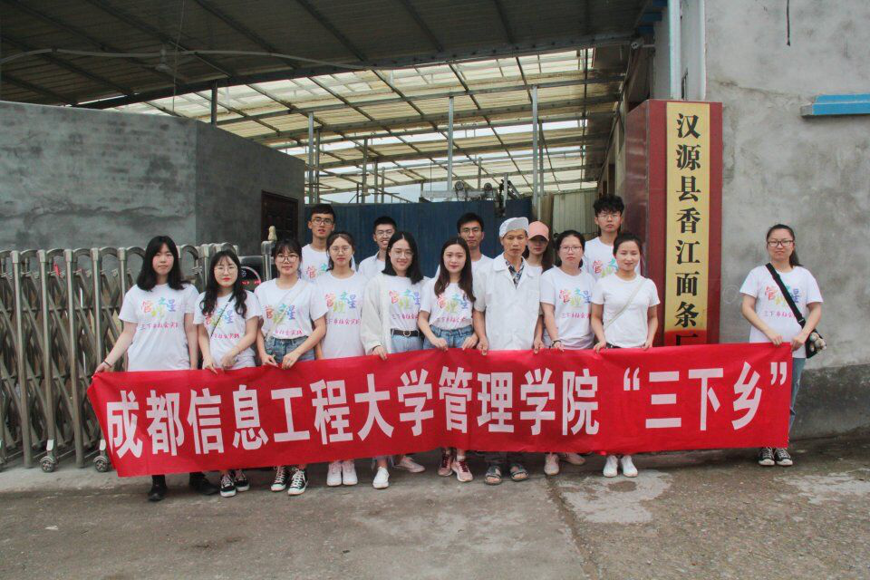 上午9点半队员们来到汉源县香江面条厂,征得面条厂管理者郭先生的同意后,一同进入生产车间观察面条的生产过程。由于机械化程度较高,只需面条厂工人调节面粉和水的比例,剩下工序直接由机器设备完成。接着同学们参观了面条包装车间,车间的自动化程度较高,工人们将产出的面条晒干放入机器,经简易加工便陆续产出成品。面条厂负责人让同学们别小看这个面条厂,虽然规模面积不大,每天产量却达4吨,可以实现3万左右的盈利,正是发达的科学技术给面条厂带来了可观和可持续的收益。同学们感慨于先进的技术不但减少了工人重复简单的工作量同时也带着村民走上了脱贫致富的道路。