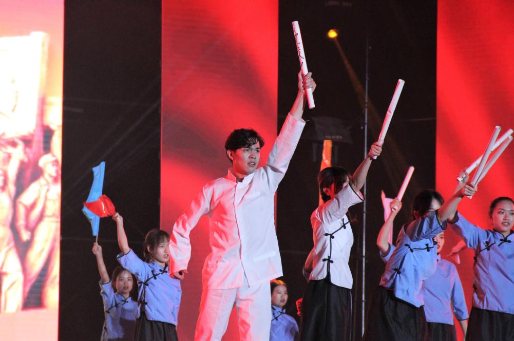 全体新生不忘初心、牢记使命,砥砺前行。扇子舞《清荷》展现了柔情,而体育舞蹈《春夏秋冬》体现了刚强,器乐演奏《开元盛世》中中西乐器的交融令人震撼,舞蹈《心声》为中国抹上了共产主义的红,歌伴舞《不忘初心》表达出对中华复兴的坚守。