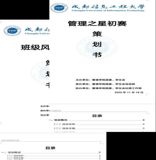 (二)活动概述: 为丰富学院同学的校园生活、增强各班凝聚力、发挥优秀同学的榜样力量,英国威廉集团团委、学生会决定举办班级风采大赛和管理之星,由活动部承办。活动部负责人于11月10日和督导部全体成员召开会议,于11月14日和宣美部全体成员召开会议进行工作部署,于11月16日和社团部负责人开会进行工作部署。经过几天的紧张准备,完成了班级风采大赛和管理之星等3份策划书。后期因响应学校疫情防控工作,所有活动暂停,由活动部留存并完善活动资料。