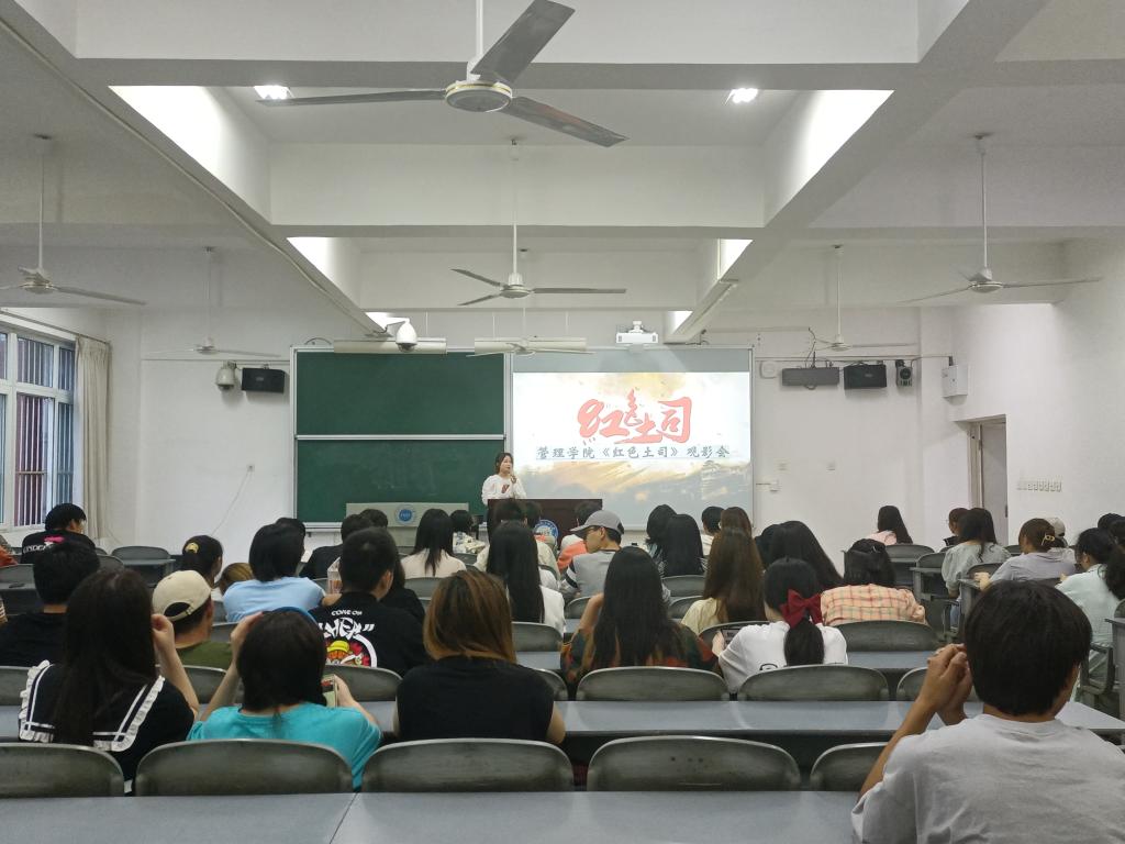 学院挑选了《红色土司》这部影片进行播放。该片取材于红军长征途经羌区时所发生的一段真实感人的故事,讲述松潘县镇坪呷竹寺世袭羌族土司安登榜在党的民族政策和红军政策感召下毅然率众参加红军的故事。电影生动形象的还原了当年那段可歌可泣的峥嵘岁月,回顾了红军做好少数民族的工作,打破统治阶级造成的民族隔阂,团结各族人民,共同对敌的奋斗历史。通过影片宣扬共产党员和工农红军的不屈精神,歌颂红军与各民族和睦相处,忧患与共的军民鱼水情,更是传递将个人融入集体,青春奉献党的使命担当。