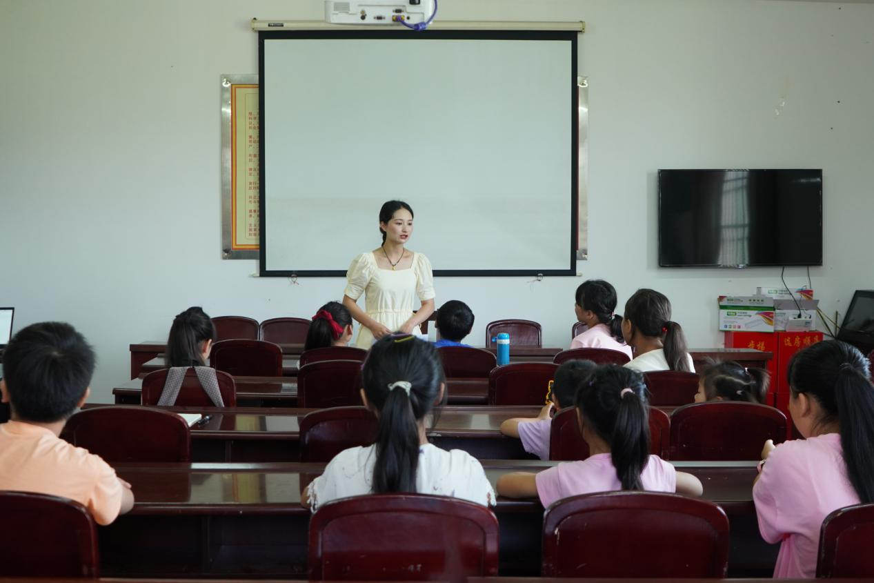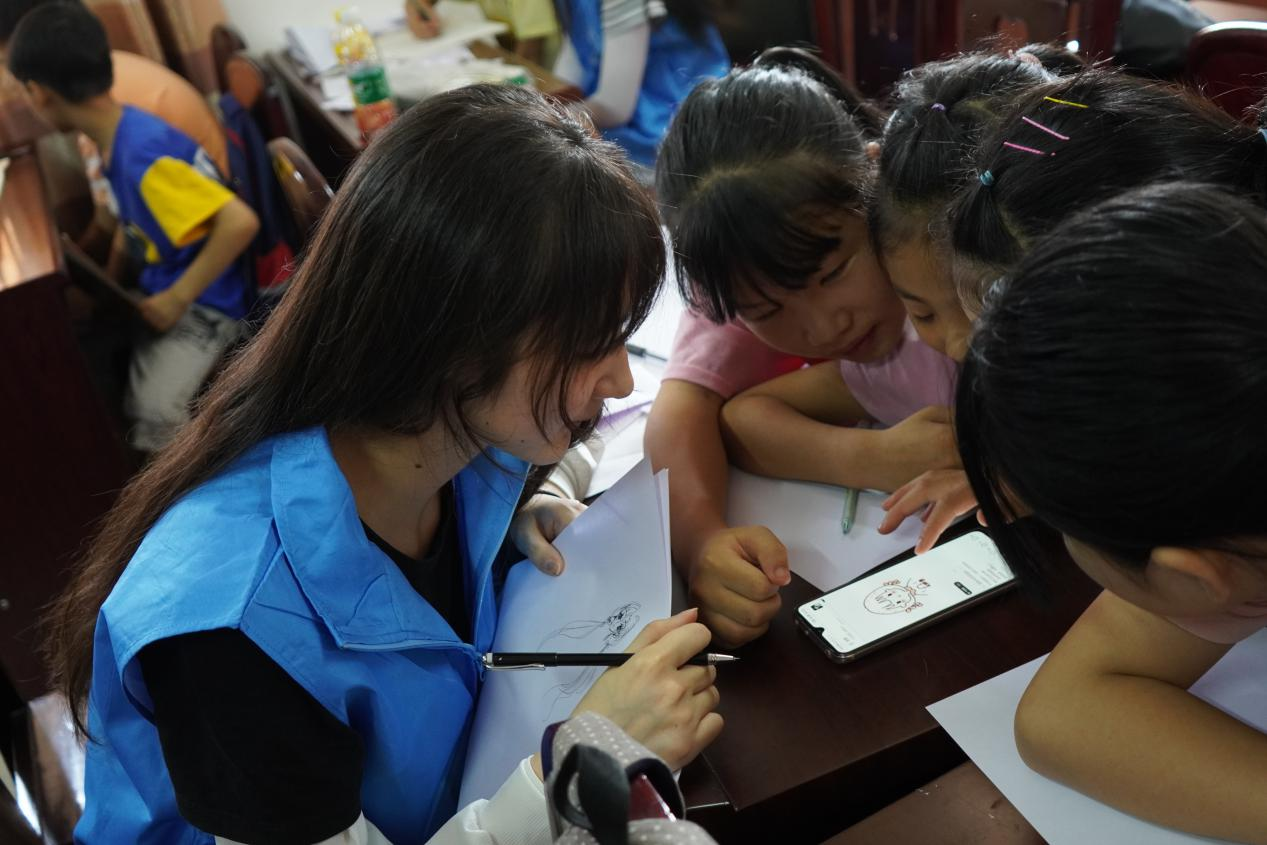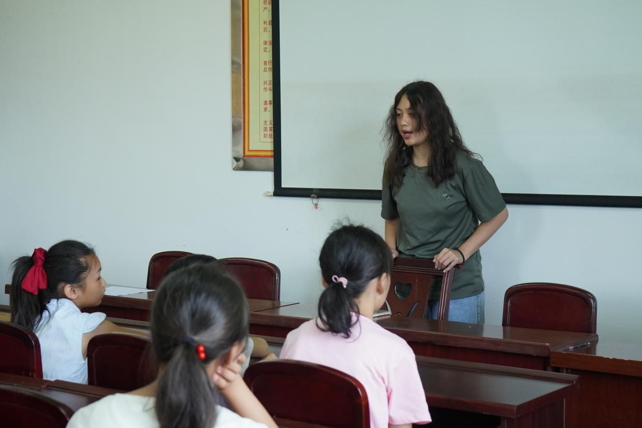针对乡村教育有限问题,乡村振兴队开办暑期“公益课堂”,对留守儿童的学习进行辅导,并为当地留守儿童开展一系列绘画、剪纸、体育健身等趣味课程。
