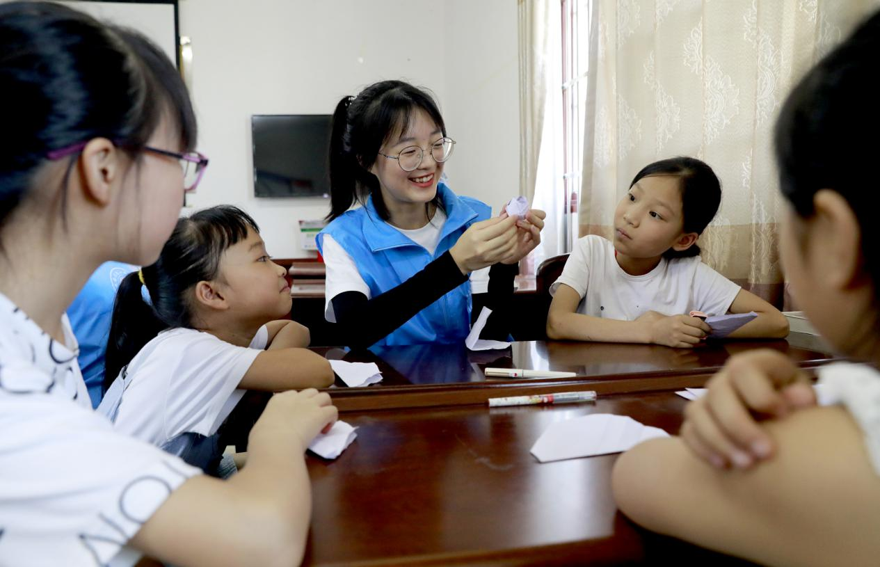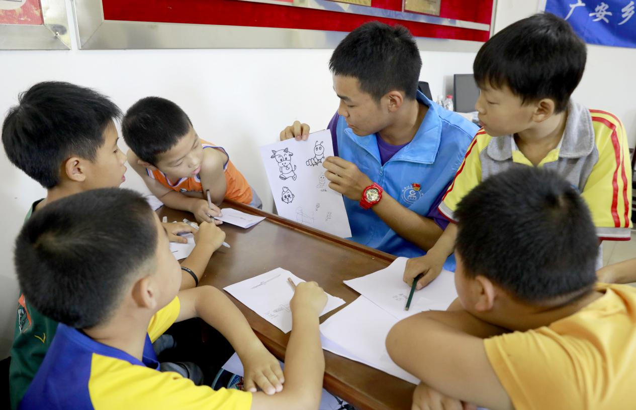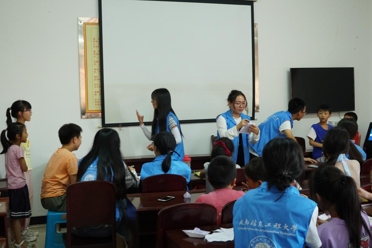 针对乡村教育有限问题,乡村振兴队开办暑期“公益课堂”,对留守儿童的学习进行辅导,并为当地留守儿童开展一系列绘画、剪纸、体育健身等趣味课程。