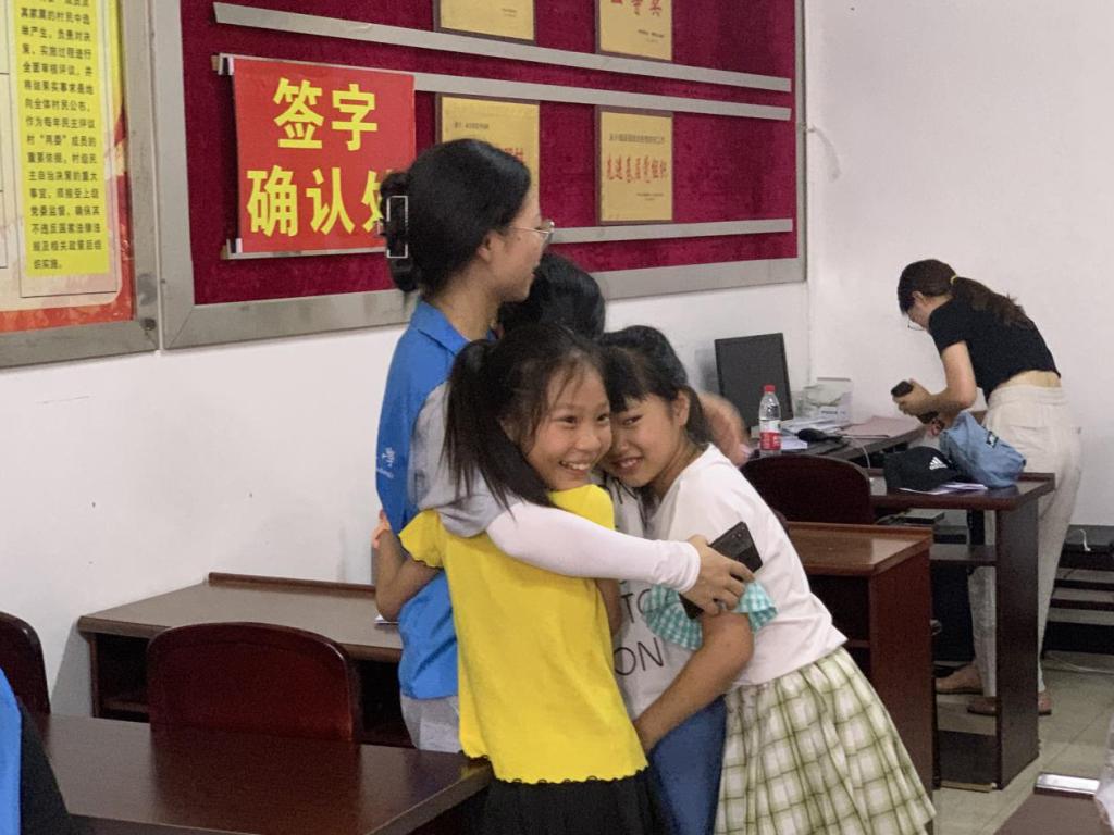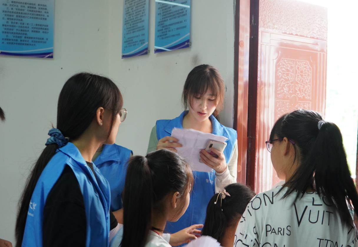 为确保学生安全问题,队员们对学生的信息进行登记,学生放学回家,队员向家长确认学生到家情况,保证“公益课堂”活动顺利开展。带队老师雷媛与前来接送学生的家长进行交流沟通,了解留守儿童家庭生活状况。