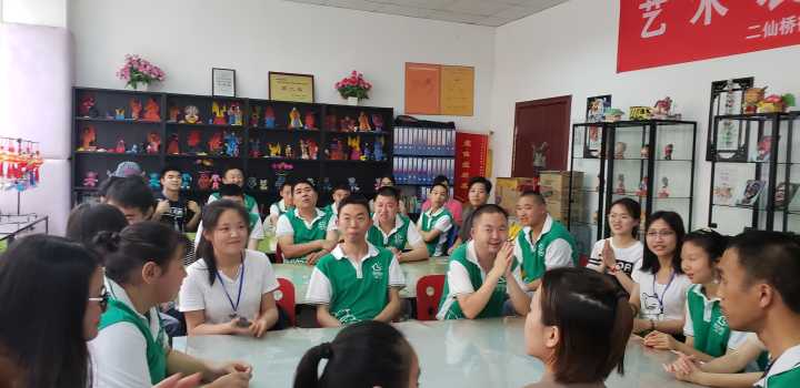 当志愿者们踏进智力障碍人士上课的教室时,迎来的是热烈的掌声与他们洋溢着热情的笑脸,望着他们阳光般的微笑,志愿者们行程中带来的疲惫顿时一扫而空。活动初始,志愿者与他们进行了简短的相互介绍,然后一起做游戏。由于他们身体的不便,有些动作做起来是比较困难的,但是他们都会坚持下去,这种坚忍不拔的精神感染了在场的每一位志愿者。在志愿者为他们表演完手语舞蹈后,他们也自告奋勇的为志愿者们表演了一支舞蹈,动作十分整齐,精彩绝伦。活动临近结束,当地的负责人杨老师给每一位志愿者送了一朵由这些残疾人士编织的玫瑰花留作纪念。最后,志愿者们与这群可爱的人们相拥告别,活动圆满结束。