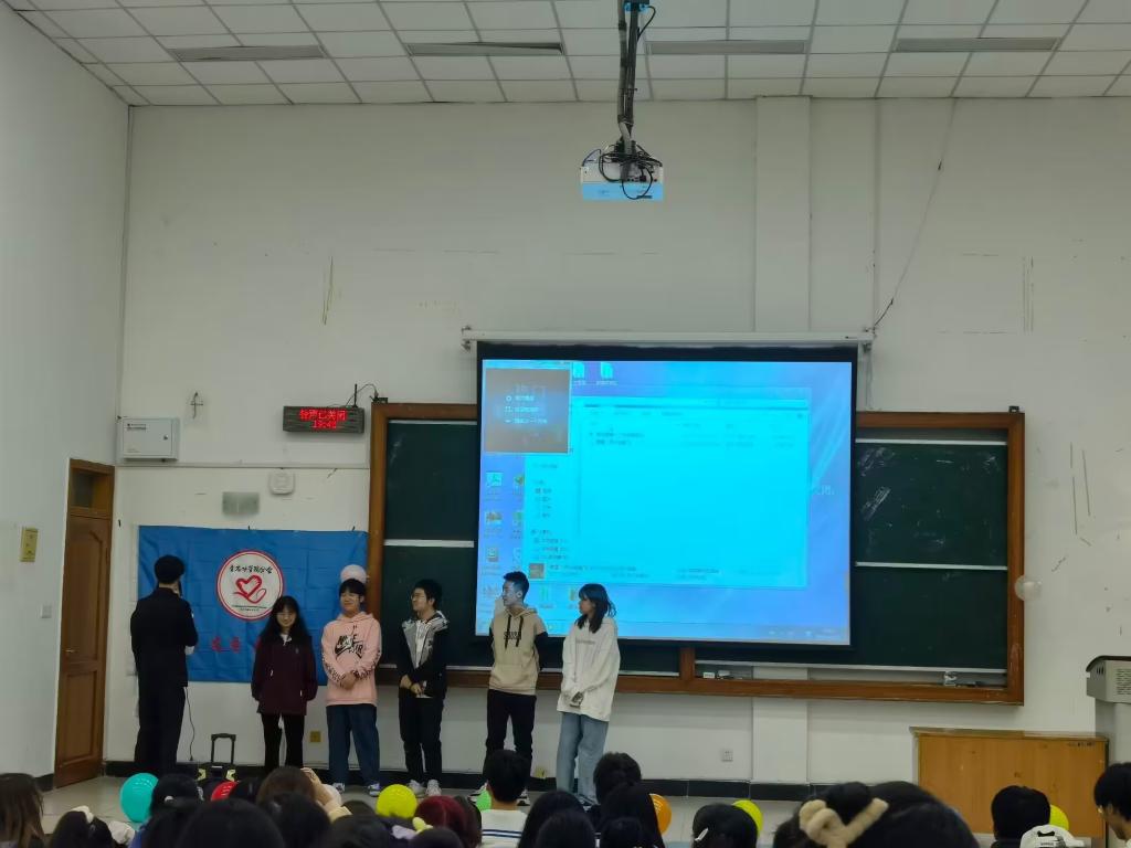 成员介绍完毕后,主持人组织开展了“加字游戏”。五人一组,由主持人说出一个字,每位志愿者轮流在字的前后添加一个字,使之能连成通顺的语句。通过“加字游戏”,现场气氛得到活跃,调动了协会成员的积极性,进一步加深了协会成员间的了解。