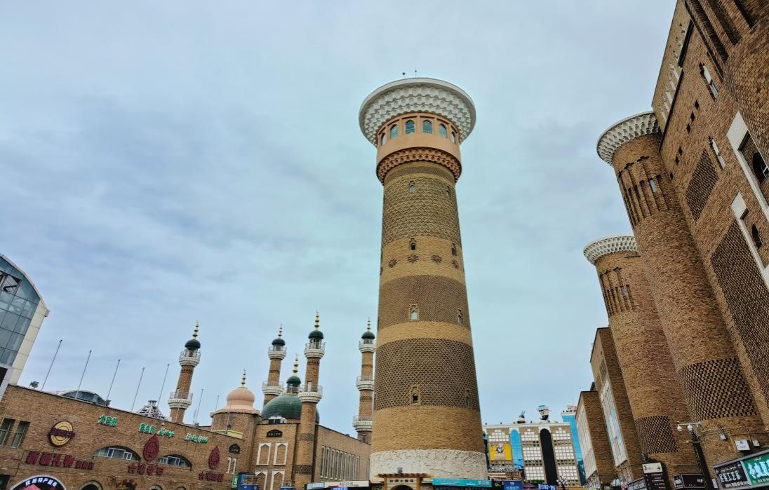 活动第二天,团队首先来到了新疆国际大巴扎,亲身感受了这里浓厚的商贸氛围和多元民族文化的交融。各色商品和美食让队员们眼花缭乱,新疆国际大巴扎是世界规模最大的大巴扎(维吾尔语,意为集市、农贸市场),是“新疆之窗”、“中亚之窗”和“世界之窗”,具有浓郁的伊斯兰建筑风格,在涵盖了建筑的功能性和时代感的基础上,重现了古丝绸之路的繁华,集中体现了浓郁的西域民族特色和地域文化。