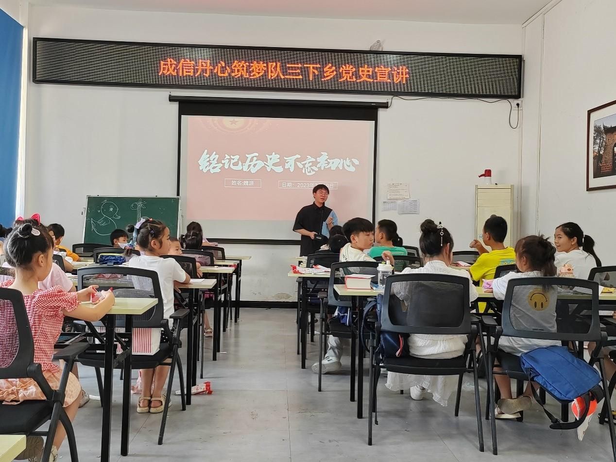 7月23日和7月25日上午十时,在洛带政府的帮助下,丹心筑梦队来到了岐山村村委会为留校的小朋友讲解党史、红色故事以及红色英雄人物事迹。第一次宣讲活动,团队宣讲成员为小朋友们准备了一些著名的红色故事和红色人物,有女英雄赵曼玉,还有许多小英雄以及他们的英勇故事,让小朋友们走进故事,以提问的方式与故事中的人物互动,进一步了解那个年代的战士进行的战斗。第二次的宣讲活动,团队宣讲成员结合第一次的经验以生动形象的方式为小朋友讲解了中国共产党的成立以及成立后进行的一系列会议,将党的发展史讲解出了新花样,收到了同学们的积极回应与社区老师的一致好评。两次宣讲活动的顺利举行,让小朋友们对党史有了更加深刻的理解。