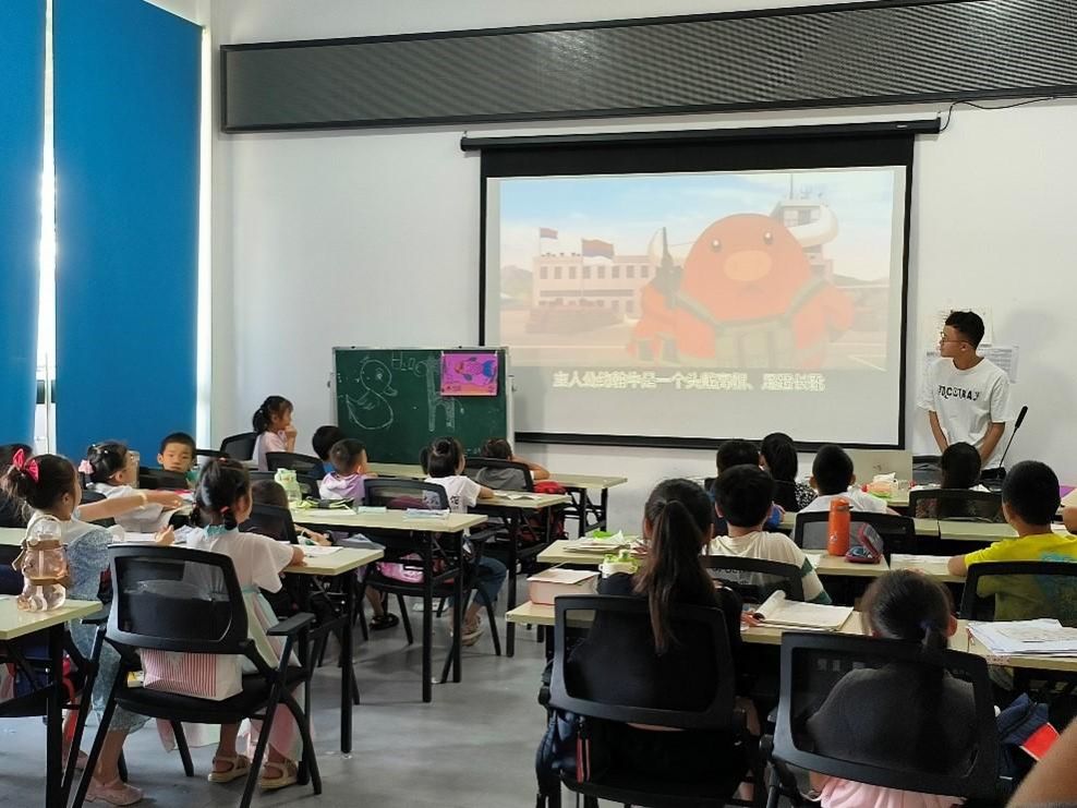 7月24日,团队成员为小朋友播放了红色动画《那年,拿兔,那些事》,电影播放过程中同学们表现良好,目不转睛地观看着荧幕上的内容,遇到疑惑处还会举手请教一旁的老师,或和同学低声讨论。有趣的历史动画片的播放,有效地帮助小朋友加深了对党的认识和理解,在小朋友心中种下爱国的种子。