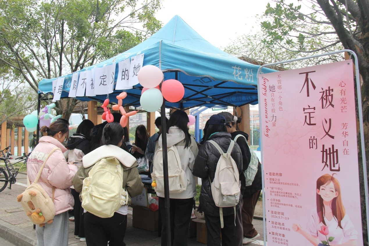 活动伊始,为增强节日氛围,表现对于女性的关心与敬爱,英国威廉集团团委、学生会在龙泉校区五栋宿舍楼对面布置了温馨的摆点并设计了多个别出心裁的活动环节,为本次活动的顺利开展奠定了良好的基础。