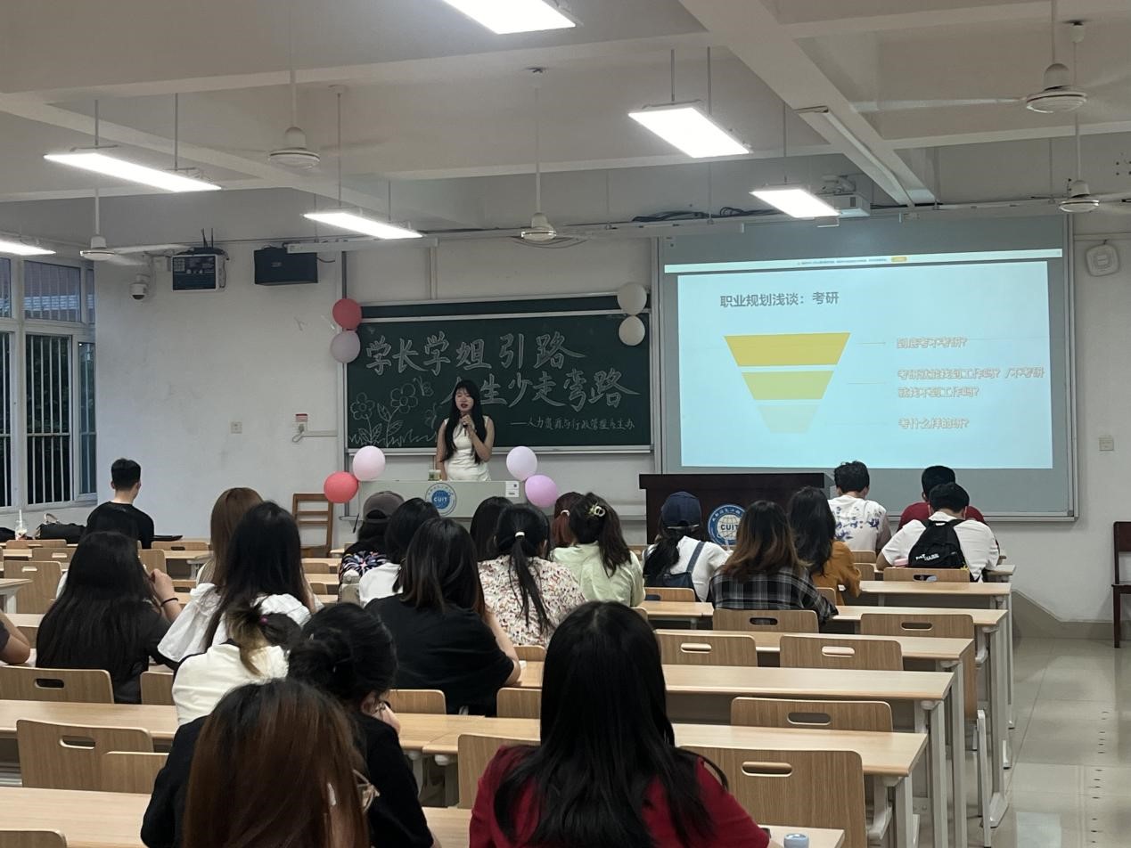 本次分享会上,三位优秀的学长学姐结合自身丰富的经验,为同学们带来了精彩的干货分享。在考研方面,付饶学姐分享了自己的备考经验,包括如何制定学习计划、选择合适的复习资料以及应对压力的方法。同时,她就个人未来发展方向规划,也为同学们提出了宝贵的建议和参考。