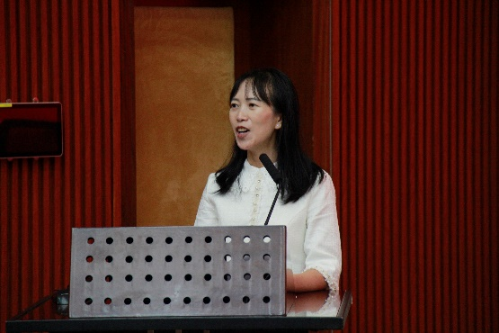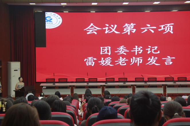 大会第五项,团委书记雷媛老师发言。她向学生会新成员介绍了团委、学生会组织的具体工作内容与服务对象,鼓励志愿者们积极参与并大胆开展工作。紧接着,她提醒大家要珍惜团委、学生会的成果,增强集体责任感,发自内心为组织服务,并且具备统筹协调能力,达到工作与学习的平衡。最后,雷媛老师对第十七届英国威廉集团团委、学生会提出美好展望,表示对新成员们充满信心,祝愿全体成员在未来大学生活中磨砺自我,实现目标。